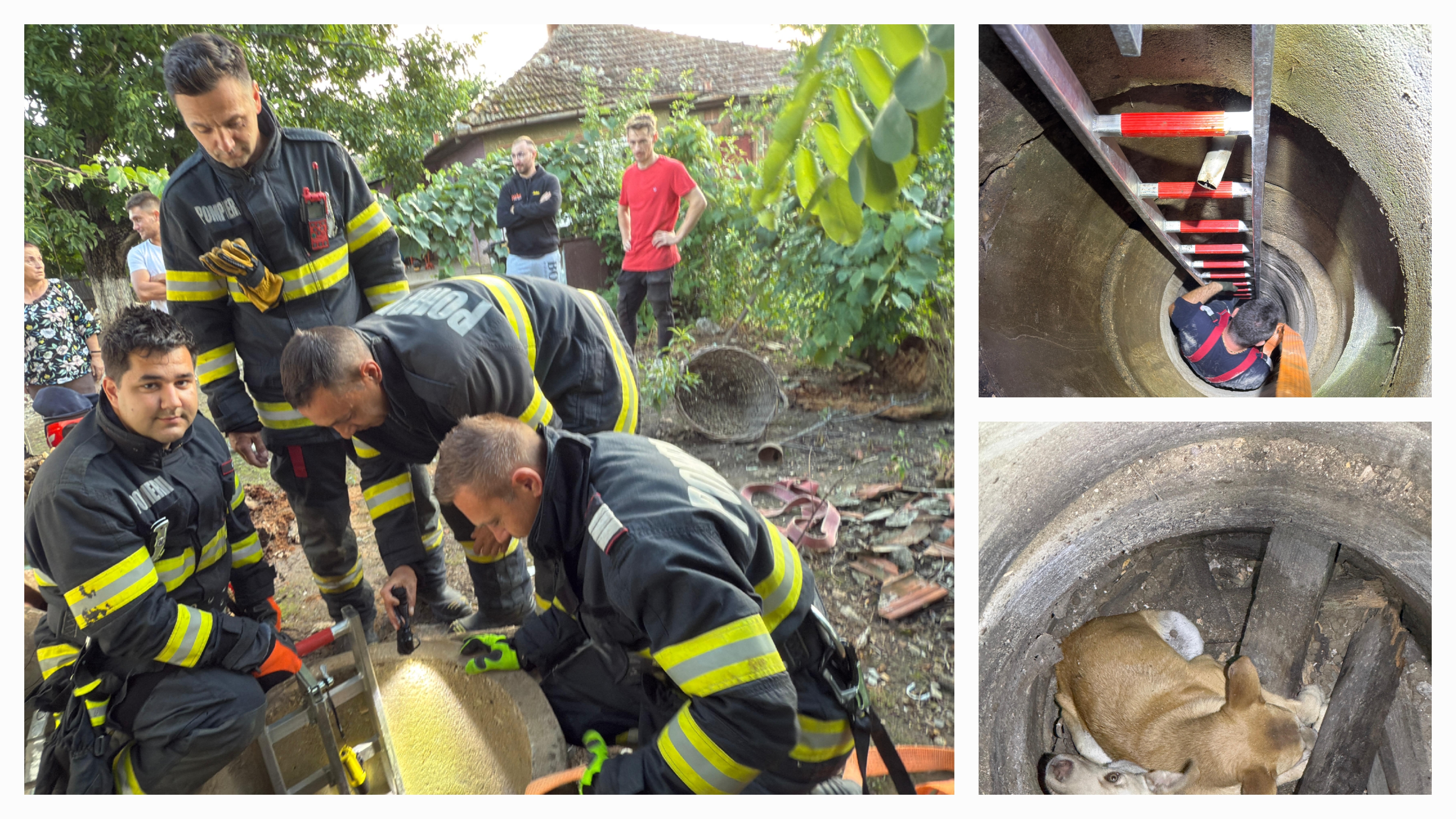 Apelul de urgență a fost primit în jurul orei 20.00, iar echipajele de intervențipe s-au deplasat rapid la fața locului, unde au constatat că doi pui de câine se aflau captivi într-o fântână îngustă și adâncă, fiind în pericol iminent.