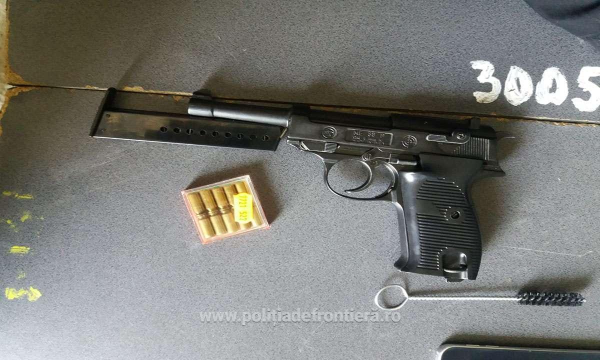 "În urma controlului specific efectuat asupra autoturismului și persoanei, au fost descoperite, în bagajele cetățeanului ucrainean, un pistol din categoria armelor neletale, supuse autorizării, şi 27 de cartușe pentru această categorie de armament. Echipa operativă a stabilit faptul că pistolul respectiv intră în categoria armelor neletale pentru producere de zgomot, fiind marca Walter, de calibrul 8 mm," spun polițiștii de frontieră.