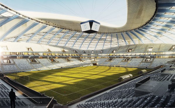 Conform proiectului, terenul de joc trebuie acoperit cu gazon natural şi prevăzut cu sistem de drenaj subteran în vacuum, cu sistem automat de irigare cu sprinklere, cu sistem de încălzire a gazonului pe timp de iarnă şi cu sistem de fotosinteză artificială, cu suprafaţă înierbată de 124 m lungime x 78 m lăţime şi cu suprafaţa totală a incintei de joc de 129 m lungime x 85 m lăţime.
