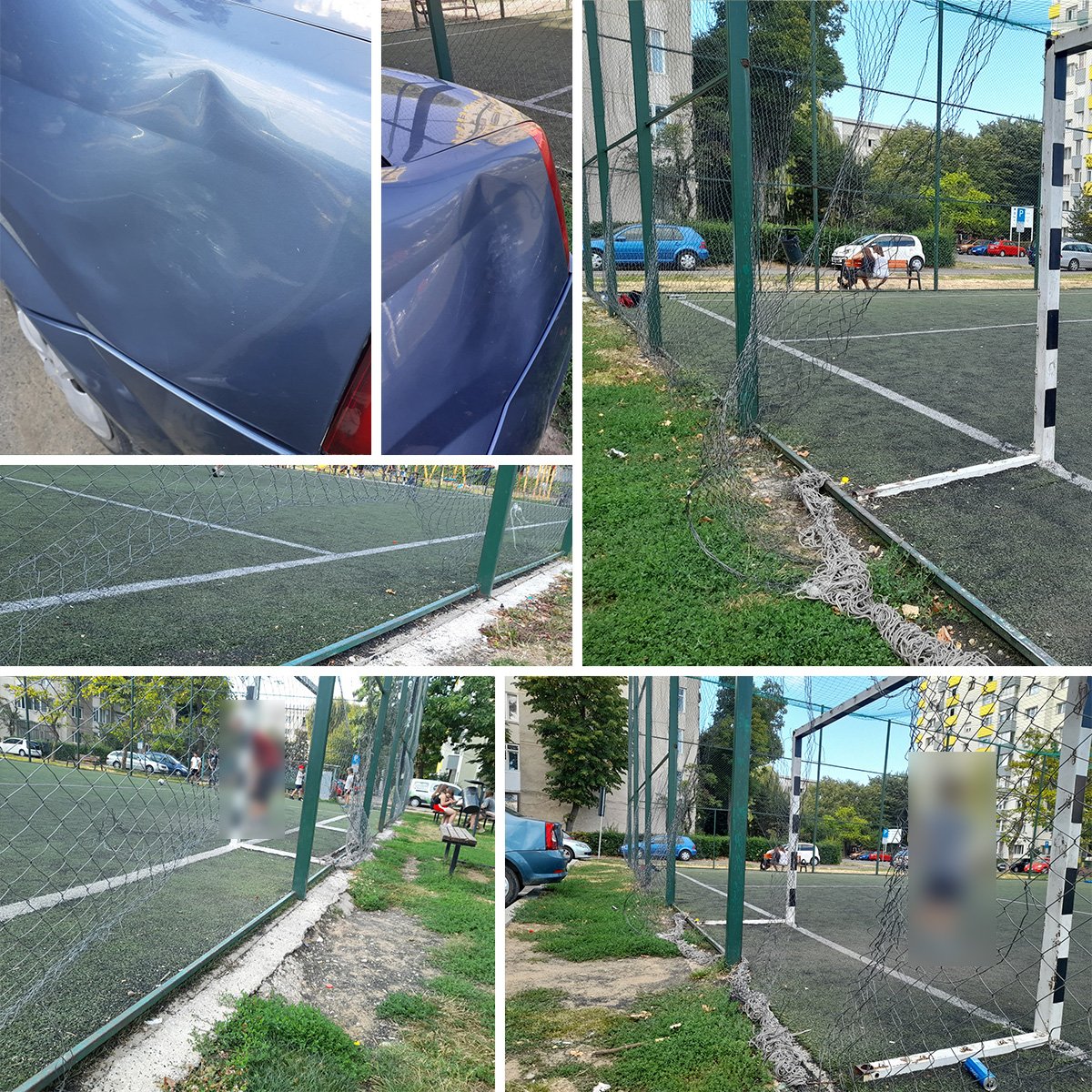 Mărturia unui păgubit: “Am tot ezitat să scriu despre o problemă des întâlnită în dragul nostru oraș în mișcare, crezând că cineva va observa și va încerca să o remedieze, însă sesizările făcute în timp pe adresa de email a primăriei nu au fost luate în seamă. De ce scriu acum? Pentru că în ultima lună am fost nevoit să repar de 3 ori mașina lovită de mingea de fotbal care trece prin gardul (care gard!?) terenului de fotbal din cartierul M15 în parcarea pentru care atât eu cât și vecinii mei, plătim o taxă anuală, unii dintre ei ajungând să parcheze în alte părți, pe marginea drumului, deoarece s-au saturat de lovituri în mașină, numere de înmatriculare rupte, sau oglinzi distruse. Problema este una veche, terenul fiind într-o stare de degradare avansată de vreo 2 ani, însă nimeni din echipa dragilor conducători nu se obosește să găsească o rezolvare și asta nu e tot. Deoarece terenul este deteriorat în proporție de 80-90%, în condiții optime fiind doar doar covorul de iarba, acesta pune în pericol și viețile copiilor care oricând se pot trezi cu poarta căzând peste ei sau cu diferite răni făcute de gardul de sârmă”.