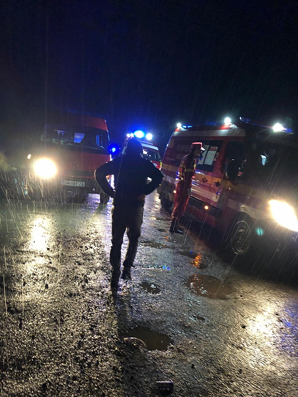 FOTO. Accident pe DN19, Satu Mare - Baia Mare. Impact între un autoturism și un microbuz școlar