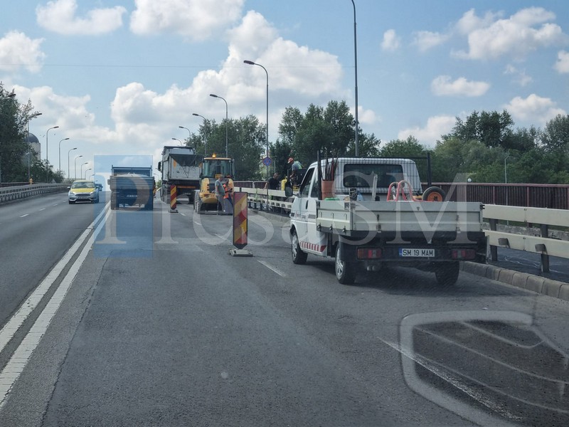 Continuă lucrările de reabilitare la podul Golescu din municipiul Satu Mare. Traficul în zonă este restricționat pe o bandă de sens, în timp ce muncitorii lucrează atât la nivelul carosabilului, cât și pentru refacerea trotuarului.