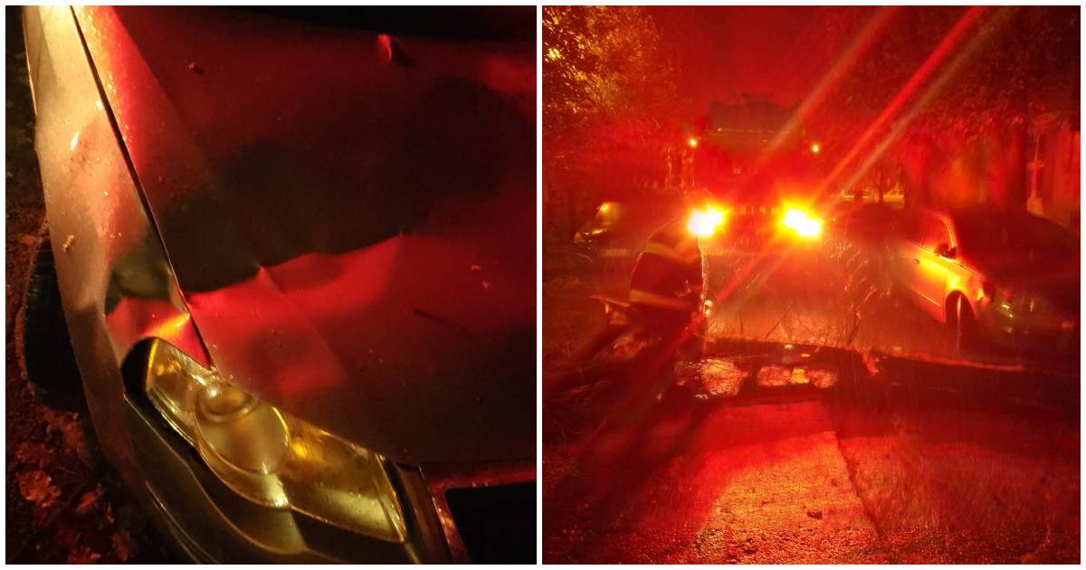 "Copac căzut pe carosabil în localitatea Satu Mare, strada Belșugului nr.21, o mașină a fost avariată. Intervine detașamentul Satu Mare cu o autospecială de descarcerare și 4 subofițeriȚ, au precizat cei de la ISU Satu Mare.