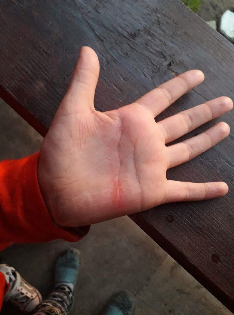 ”La Pomi, elevii clasei a I-a au fost lăsați în grija femeii de serviciu, deoarece învățătoarea lor este bolnava, iar femeia de serviciu le-a aplicat mai multor copii din clasă o corecție cu o vergea, lăsându-le urme de violență! Părinții au discutat cu directoarea școlii, dar neprimind un răspuns la această problemă, părinții sunt deciși să meargă până la Inspectoratul Școlar sau chiar la Protecția Copilului! Am ajuns ca femeia de serviciu să facă pe pedagogul în școli și să coboare militaria din pod peste niște copii de 8 ani!”, spune unul dintre părinți