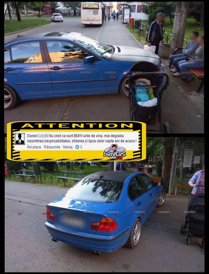 Un nou caz de acest gen a fost făcut public de către activiștii de la Drivers Satu Mare. Un posesor de BMW și-a parcat autoturismul taman în stația de autobuz, astfel încât autobuzele să nu poată intra. Mai mult, a blocat și trotuarul, mamele cu copii fiind nevoite să circule pe...șosea.