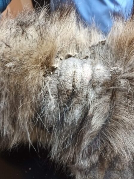 Cei de la Free Life au preluat cățelul și l-au dus direct la veterinar pentru investigații medicale și este în prezent sub tratament.