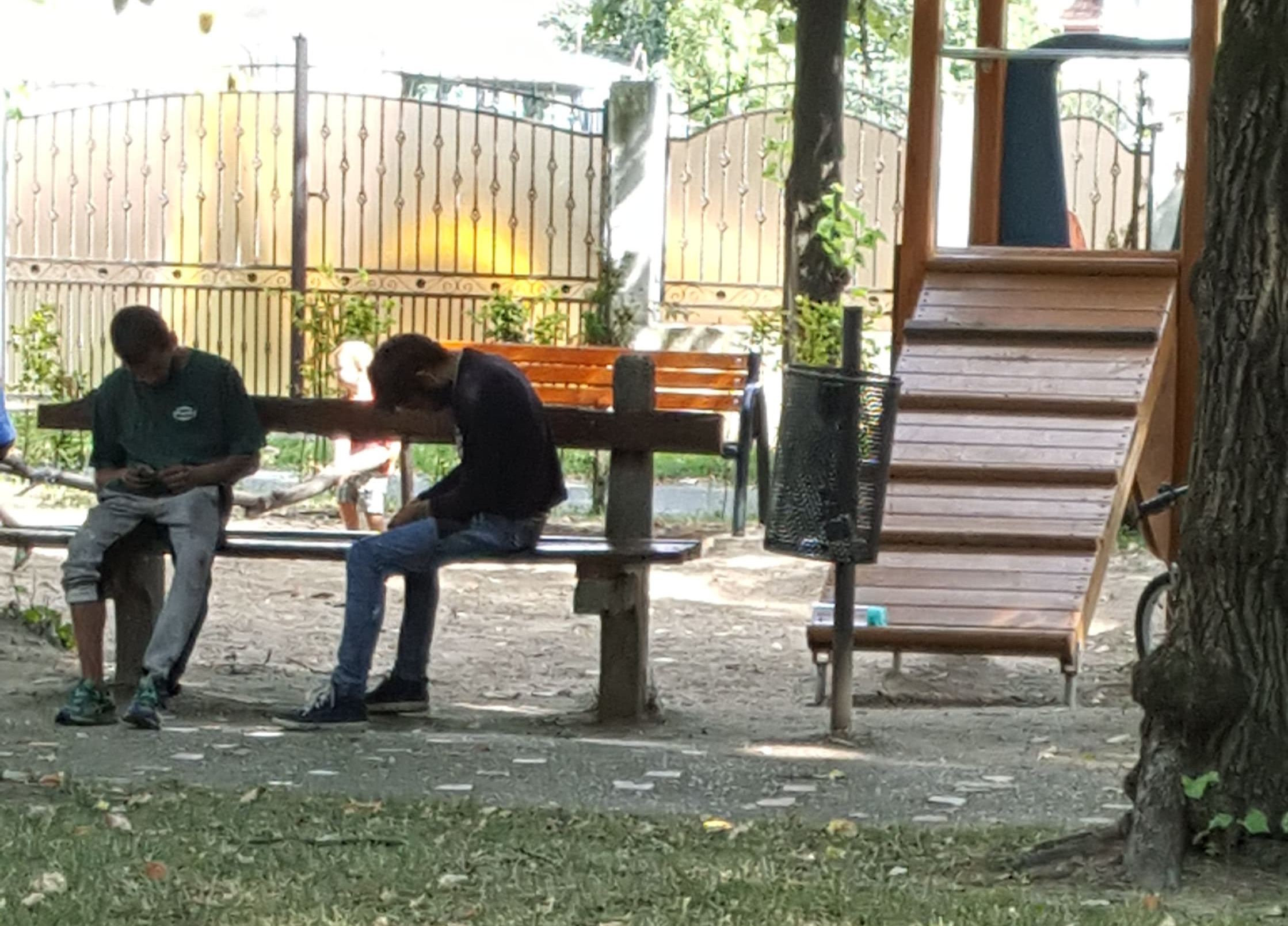 ”La orele după-amiezii am ieșit în Parcul Soarelui cu o prietenă și copiii noștri. Din păcate, doi tineri drogați poposeau pe banca situată lângă locul de joacă. Nu am vrut sa mă apropii prea mult de ei pentru că nu știam dacă vor reacționa sau nu. Am reușit, totuși, să le fac niște poze. E prea de tot. Nu mai putem să ieșim cu copiii noștri fără să ne întoarcem privirea și să ne gândim că putem fi atacați de astfel specimene. (...) Cert este că unul dintre ei își înfășura țigara, sau mă rog, ce-o fi făcând cu ea după care a tras un fum și i-a dat-o și colegului de suferință. Nu vreau să critic pe nimeni sau să atac poliția locală pentru că aș fi absurdă ca acesti oameni să fie în toate colțurile orașului, dar din păcate ne trezim cu pericole la tot pasul și nu avem cui să îi cerem ajutorul”, a spus mama revoltată pentru PresaSM.