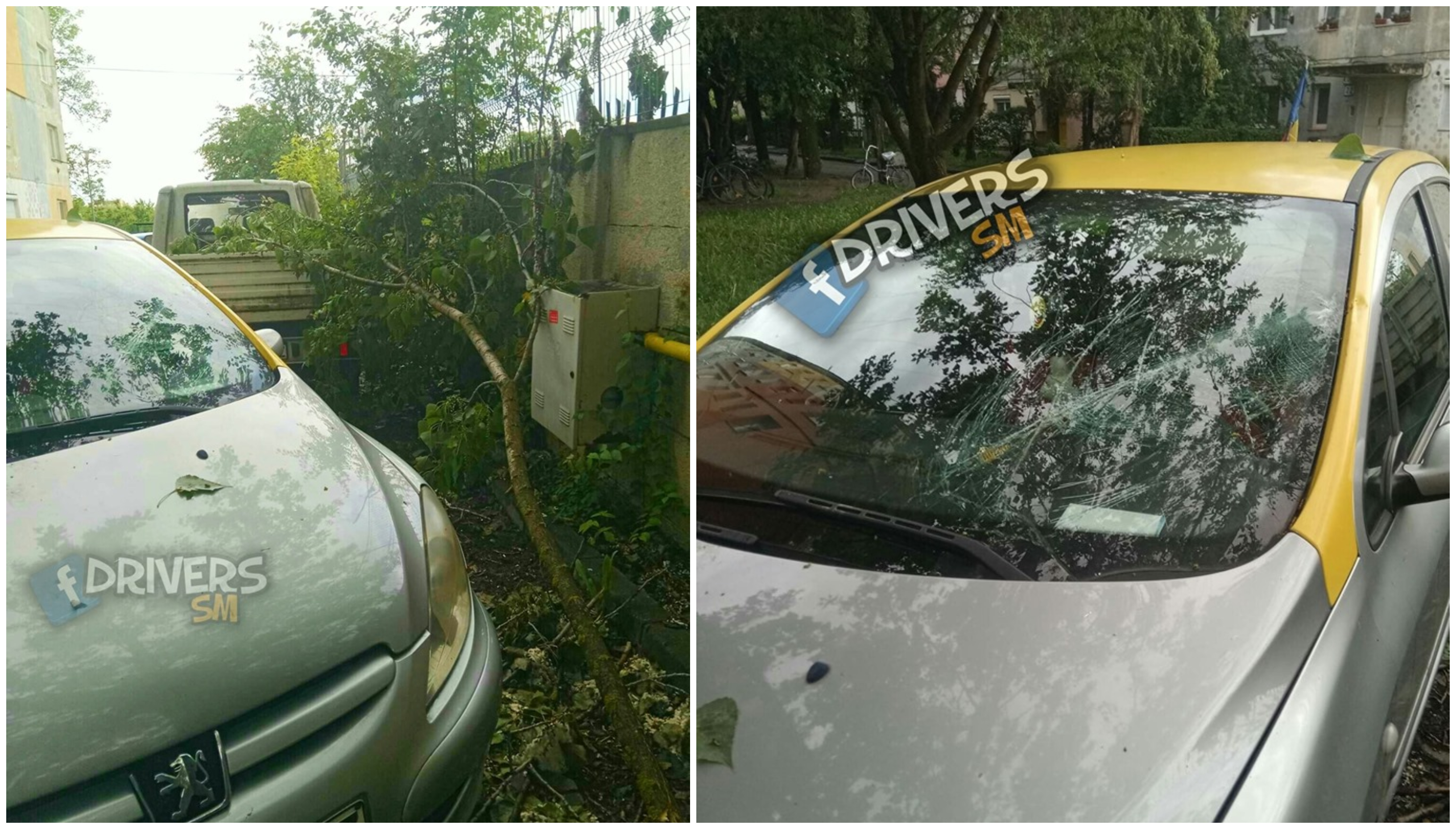 O creangă s-a rupt dintr-un copac și a căzut pe o mașină, pe care a avariat-o, în special parbrizul. Totul s-a întâmplat astăzi, în Cartierul Solidarității din municipiul Satu Mare.