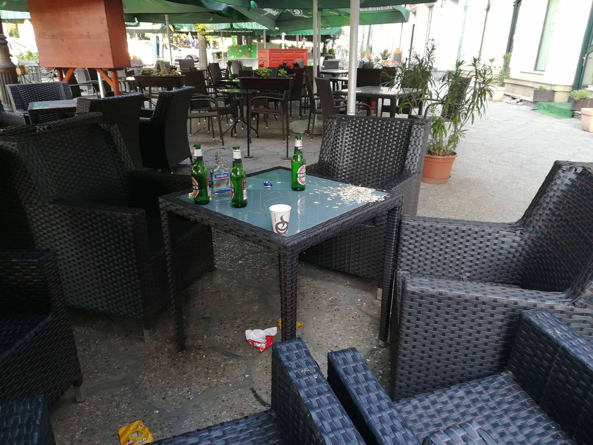 ”Peste zi patrulează poliția locală, cam o dată la 30-45 minute. Dar se pare că noaptea ori nu acționează ori nu le pară. După ce am închis terasa, după ora 12.00, au venit și au lăsat prăpăd după ei. La o altă terasă le-a distrus și un televizor. Și toate acestea în punctul zero al municipiului Satu Mare”, a spus unul dintre patronii de terase.