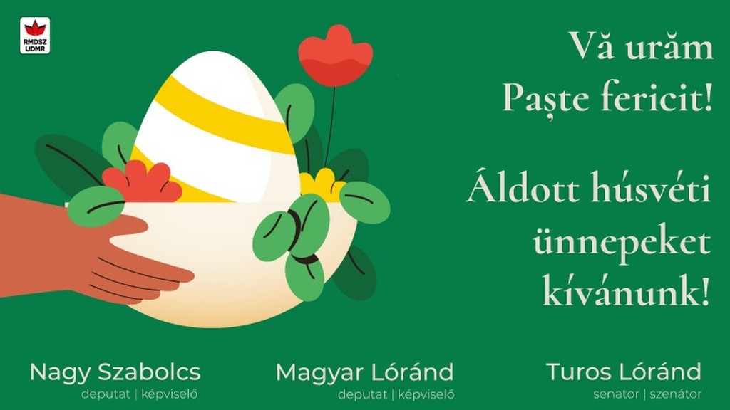 Deputații Magyar Lorand și Nagy Szabolcs, alături de senatorul Turos Lorand, le transmit gânduri bune tuturor creștinilor care sărbătoresc în aceste zile Sfintele Paști.