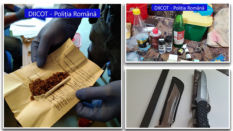 În urma celor 17 percheziții care au avut loc în cursul zilei de ieri, pe raza județelor Bihor și Maramureș, au fost ridicate aproximativ 250 de grame de materii vegetale impregnate cu pulberi psihoactive, 45 de grame de pulbere psihoactivă, 10 grame de cristale de MDMA, 12 comprimate de ecstasy, 1,5 litri de acetonă, 2 litri de diluant, 16 telefoane mobile, 5 aparate de mărunţit, 6 cântare de precizie, precum și sumele de 10.000 de lei şi 232.000 de HUF.
