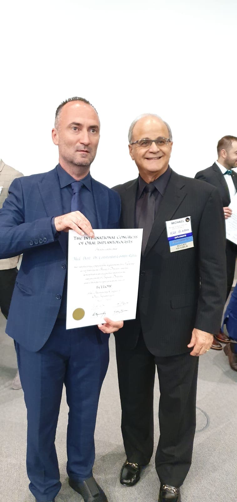 ”Am participat în perioada 23 - 25 mai la cursul Internațional de implantologie orală organizat de către ICOI (International Congress Of oral Implantologist) - aceasta fiind una dintre cele mai mari și reprezentative organizații la nivel mondial al implantologiei. Unde am obținut titlul de FELLOW, care este un grad de recunoaștere al profesionalismului. Titlu obținut din partea ICOI pe baza unor examene și teste, plus o cazuistică serioasă de tratamente dentare cu ajutorul implantelor. De la începutul cazului până la sfârșit”, a precizat dr. Cosmin Rațiu.