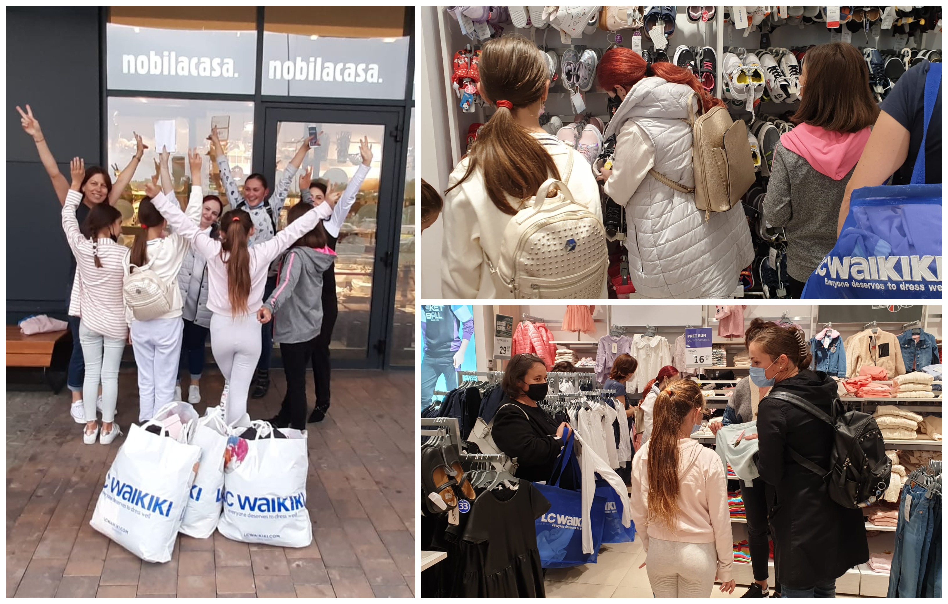 Monika, Letiția, Barbara, Denisa și Dora au fost încântate de sesiunea de shopping și și-au ales pantaloni, pulovere, bluze, geci și pantofi, articole de îmbrăcăminte pe care au promis că le vor purta cu plăcere nu doar la școală, ci și în timpul liber.