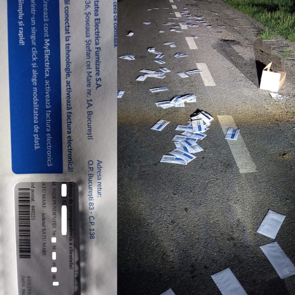 Sute de facturi care trebuiau să ajungă în cutiile poștale ale sătmărenilor din municipiul Satu Mare, în special Cartierul Micro 17 (Bulevardul Independenței) au ajuns - în condiții neclare - pe asfalt pe raza comunei Bocșa din județul Sălaj, informează obiectiv-sm.ro