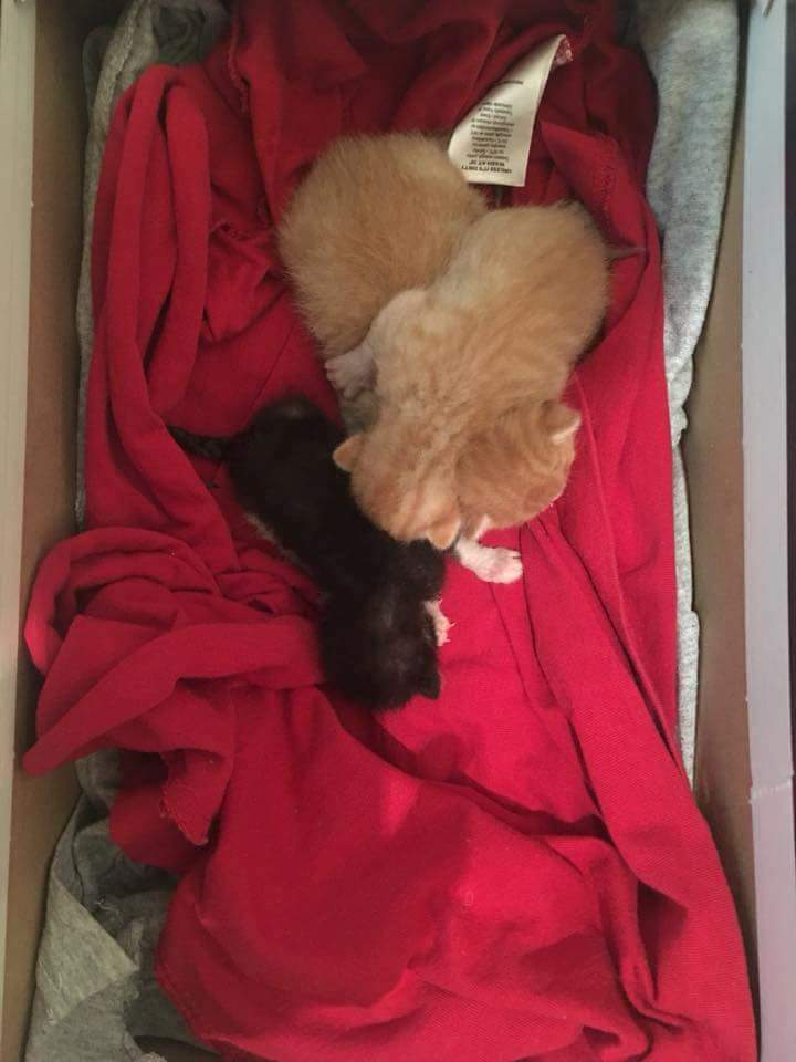 Sub un morman de gunoaie, intr-o punga de plastic, zaceau 3 fiinte care acum au nevoie de o mama PISICA, care sa ii ALAPTEZE!