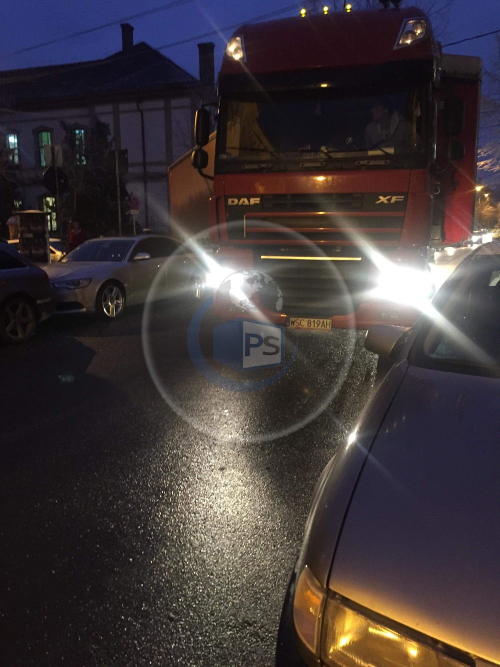 FOTO. GHINION. TIR blocat chiar între Poliție și Tribunal, în centrul Sătmarului