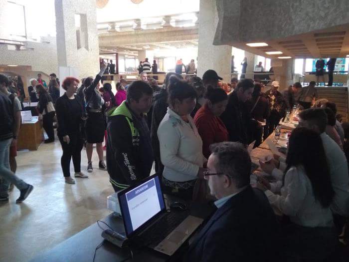 O nouă bursă, aceeași poveste. Pregătită cu mult entuziasm, Bursa Generală a Locurilor de Muncă, ediția de primăvară, care a debutat în această dimineață, 20 aprilie 2018, s-a transformat după doar câteva minute într-o înghesuială fără margini, dar nu pentru că sătmărenii au avut prea multă ambiție pentru a pune mâna rapid pe un loc de muncă, ci pentru simplul fapt că ștampila de șomer s-a dovedit a fi, din nou, aur curat pentru șomerii cărora nu le pasă.