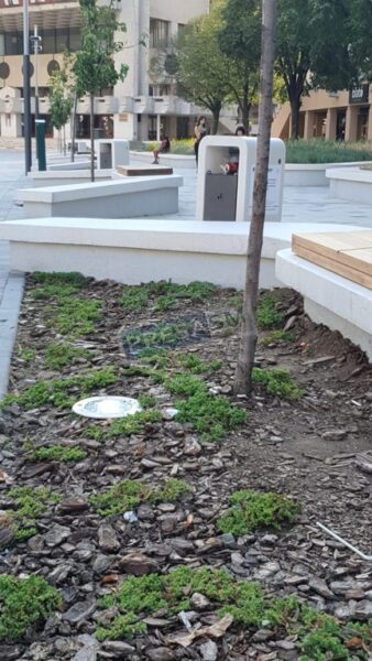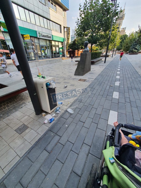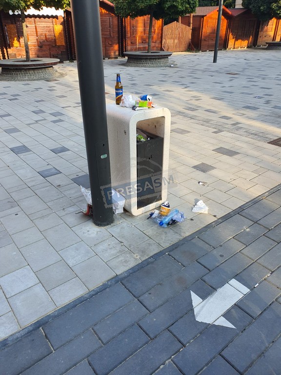 Gunoaiele dau pe afară în zona centrală recent reabilitată. Chiar dacă proiectul a prevăzut mai multe coșuri de gunoi, se pare că este nevoie de mult mai multă diligență atunci când vorbim de golirea acestora.