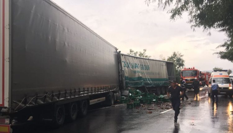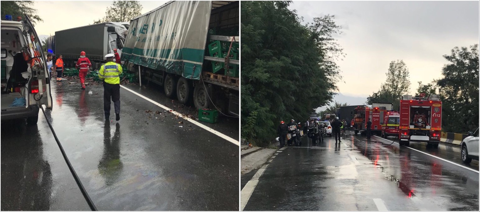 Două TIR-uri s-au tamponat frontal. Un bărbat, în vârstă de 51 de ani, din Timisoara, aflat la volanul unui TIR, a pătruns pe contrasens și a intrat în coliziune cu un alt autotren, condus regulamentar de către un careian, în vârstă de 39 de ani.