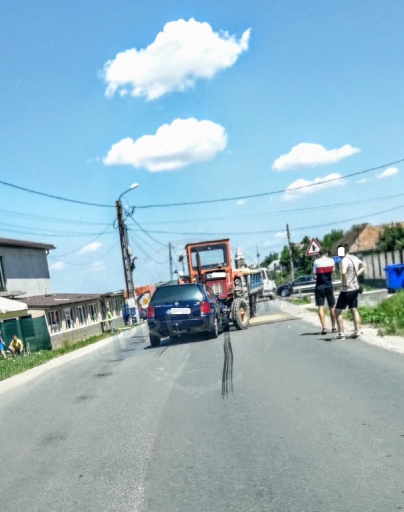 FOTO. Impact frontal între o mașină și un tractor în județul Satu Mare