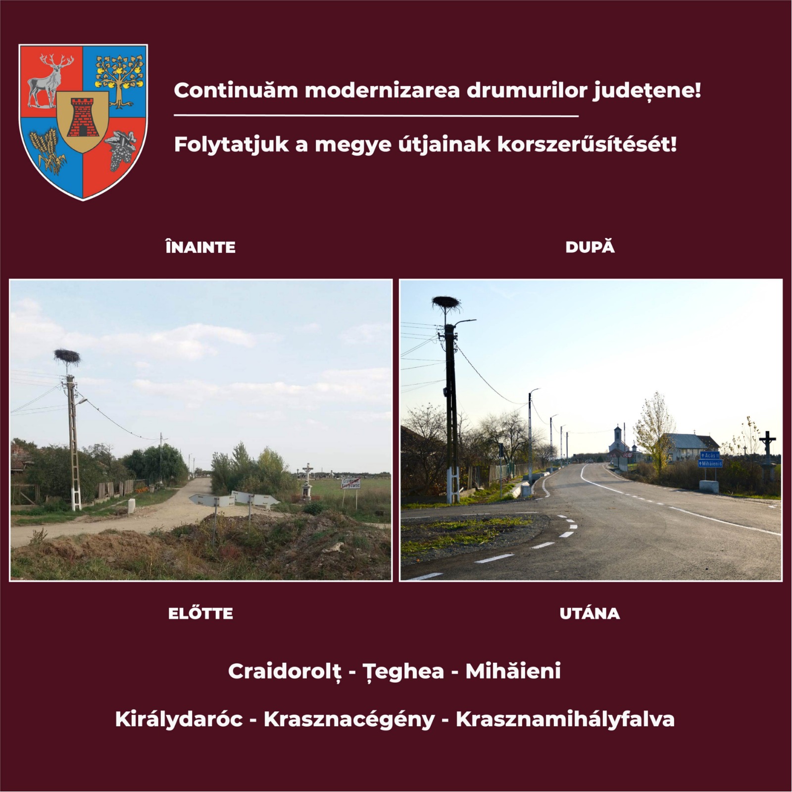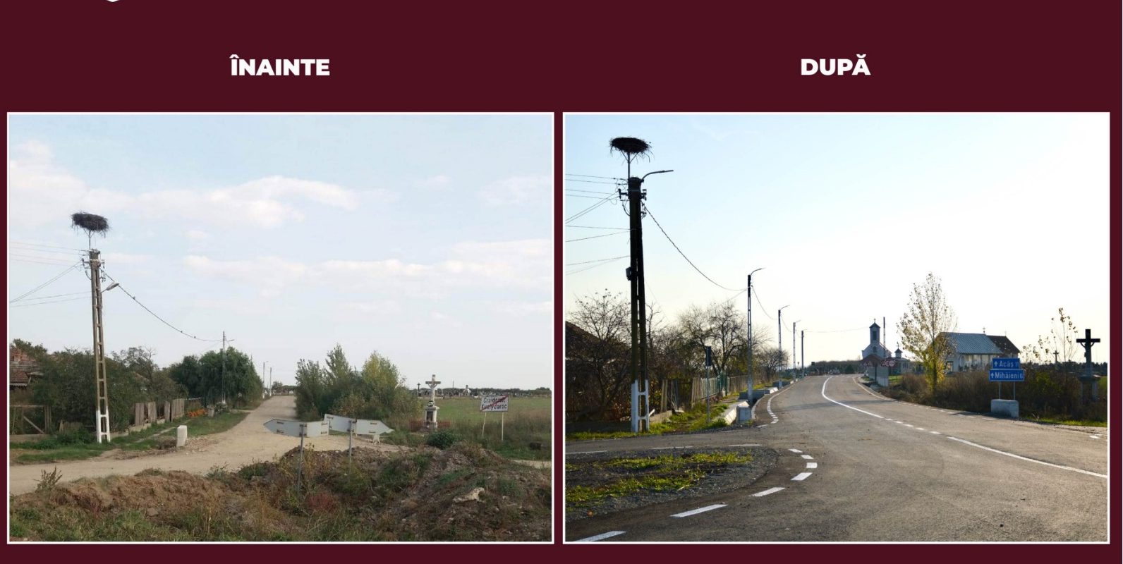Lucrarea a beneficiat de finanțare prin Programul Național de Dezvoltare Locală I, valoarea totală a lucrării fiind de 10,6 milioane de lei. FOTO. ÎNAINTE și DUPĂ. Transformarea unui drum catastrofal din județul Satu Mare