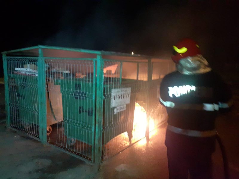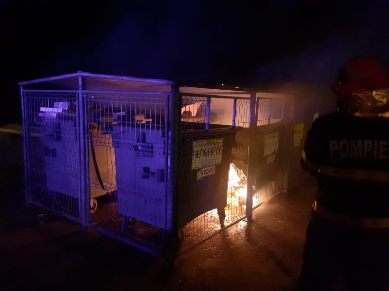 Intervenția rapidă a pompierilor a împiedicat propagarea incendiului la tomberoanele situate în apropiere.