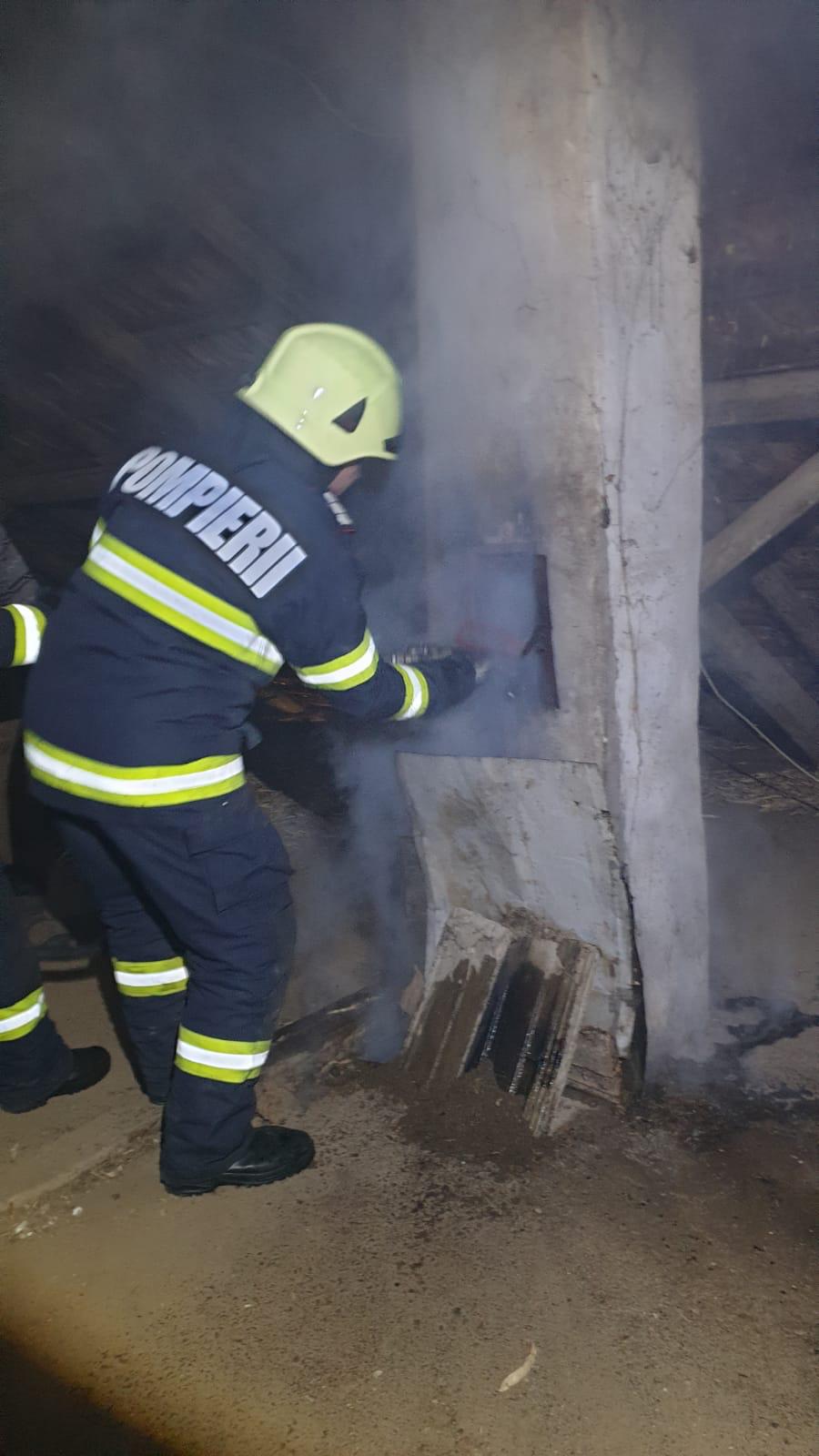 Cauza probabilă de producere a incendiului este jar sau scântei din coșul de fum necurățat de funingine.