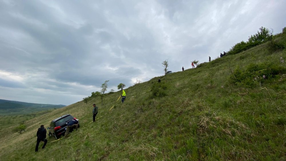 Mașina a fost găsită, la fel și ocupanții, Suv-ul era într-o poziție foarte periculoasă, așa că recuperarea în sine a fost amânată pe duminică dimineața. Recuperarea a fost îngreunată de condițiile Meteo, în zorii zilei a început să plouă. Mai mulți colegi au participat la recuperare, cărora le mulțumim! Mașina a ajuns cu bine înapoi pe asfalt, acolo unde îi stă bine modelului respectiv”.