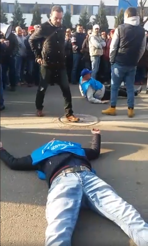 Sindicaliștii au mers mai apoi chiar în fața porții principale de acces, unde i-au amenințat pe cei din întreprindere că vor intra peste ei, scandând ”Rușine să vă fie” către muncitorii care nu au întrerupt lucrul, dar și către cei din conducerea fabricii.
