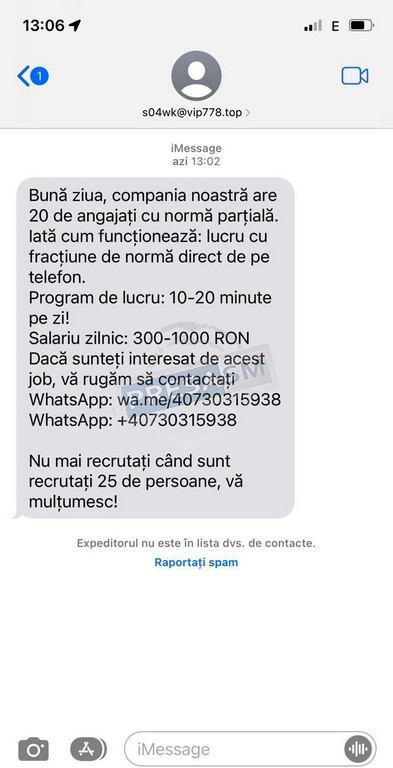 Escrocii nu se lasă și folosesc aplicațiile de mesagerie pentru a-și găsi victime. De această dată, mai mulți sătmăreni au primit mesaje cu privire la recrutări prin care se promiteau salarii mari pentru câteva ore de muncă.