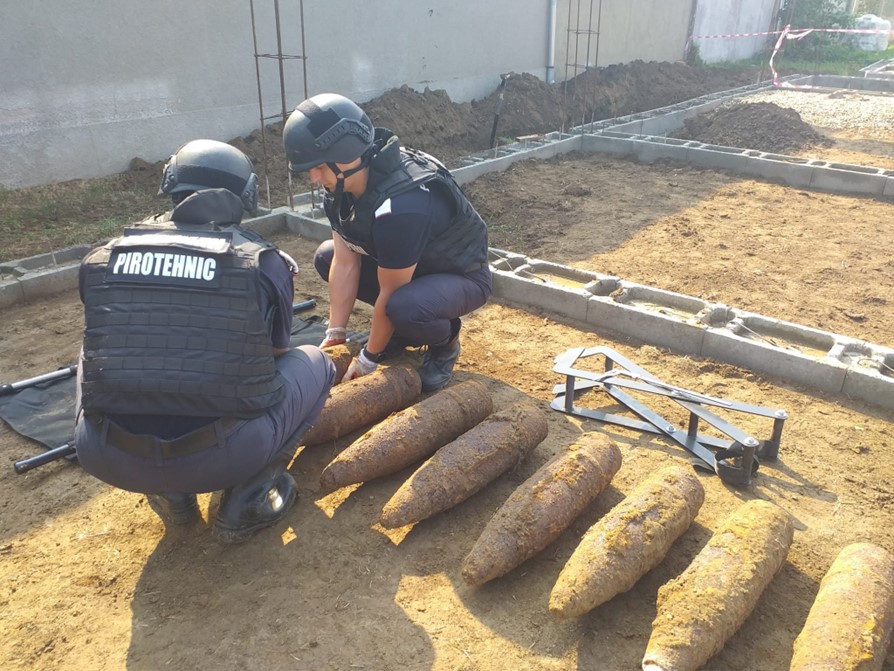 Pentru gestionarea situației semnalate, la fața locului au fost mobilizați imediat, specialiștii pirotehniști ai Inspectoratului pentru Situații de Urgență “Crișana”, care, ajunși la locul intervenției, au identificat trei proiectile de calibru 152 de milimetri. Echipajul pirotehnic a procedat la balizarea zonei și asanarea teritoriului, descoperind încă trei proiectile, de calibru 152 de milimetri și unul, de 76 de milimetri.