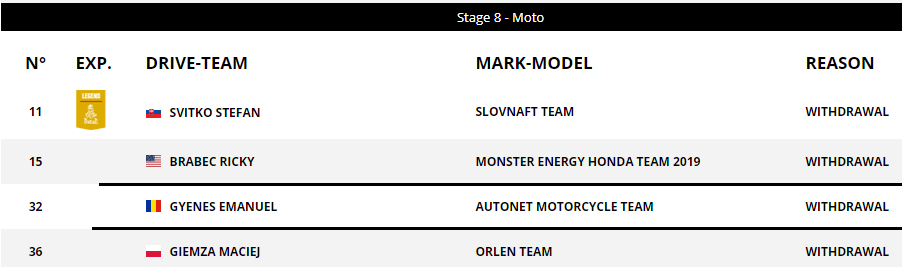Potrivit sitului oficial al raliului Dakar, riderul sătmărean Mani Guenes a fost nevoit să se retragă din competiție. Încă nu au fost anunțate motivele acestei decizii. Cert este că Mani s-a retras în etapa a 8-a.