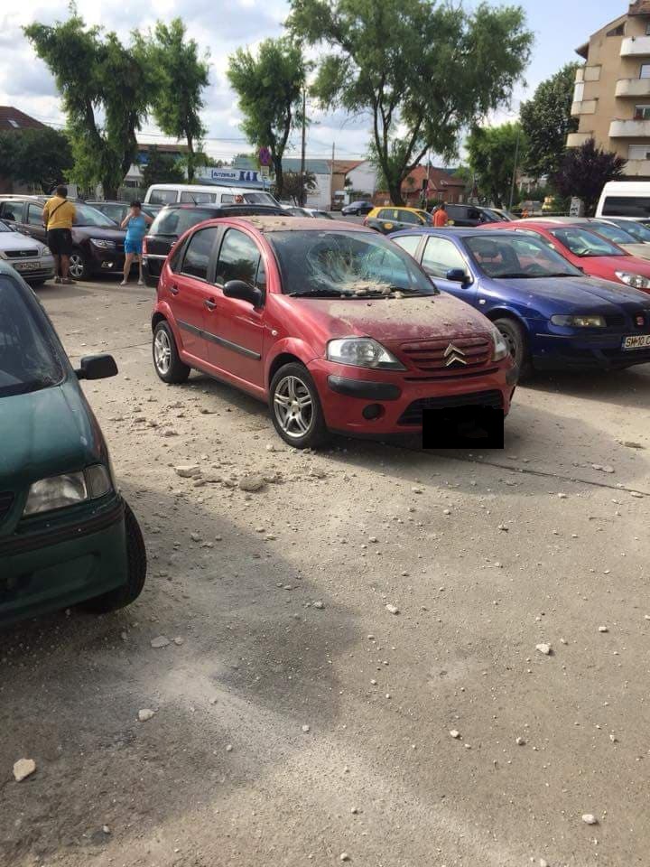 Un autoturism a fost avariat destul de serios în municipiul Satu Mare. Totul s-a întâmplat pe o stradă din Cartierul Carpați II, acolo unde s-a desprins tencuiala de pe un bloc și a căzut pe o mașină parcată în fața unui bloc.