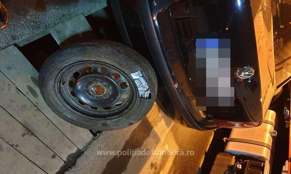 Existând suspiciuni că acesta transportă țigări, polițiștii de frontieră împreună cu lucrătorii vamali au efectuat un control amănunțit asupra vehiculului, fiind descoperită ascunsă, în vederea sustragerii de la controlul vamal, în roata de rezervă şi în aripile autoturismului, cantitatea de 350 pachete cu ţigări, de provenienţă ucraineană.