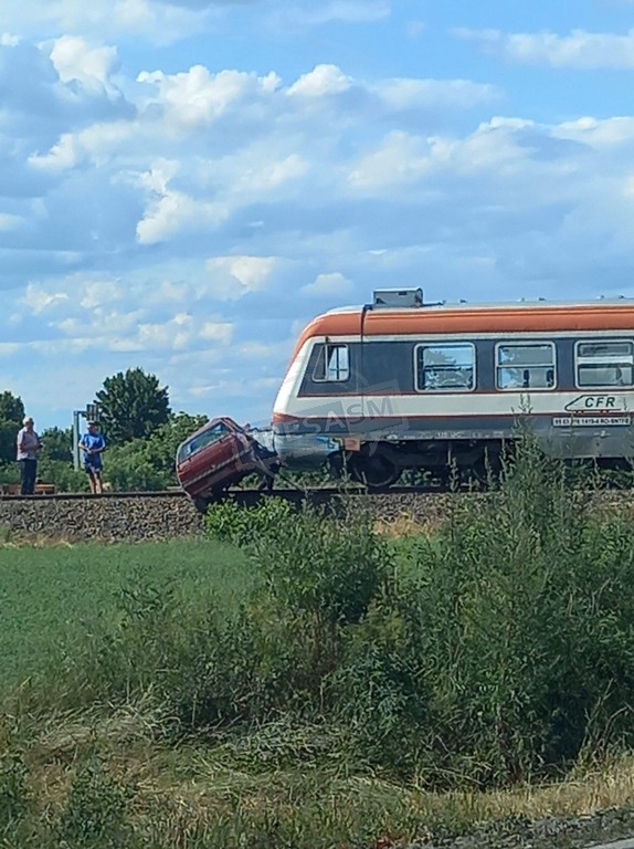 Accident rutier la trecerea de nivel cu calea ferată din zona localității Apa. Trenul care circula pe relația Baia Mare - Satu Mare a lovit în plin un trailer, pe care se afla o mașină, conform informațiilor PresaSM.