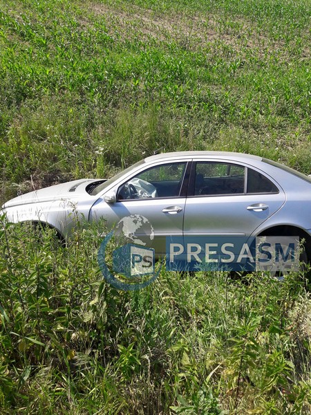 Accident rutier pe Drumul Național 19, dintre municipiul Satu Mare și orașul Livada. Din câte se pare, șoferul unui autoturism Mercedes Benz ar fi pierdut controlul volanului în sensul giratoriu de la intersecția cu drumul către Vama Halmeu, oprindu-se în șanțul de pe marginea șoselei.