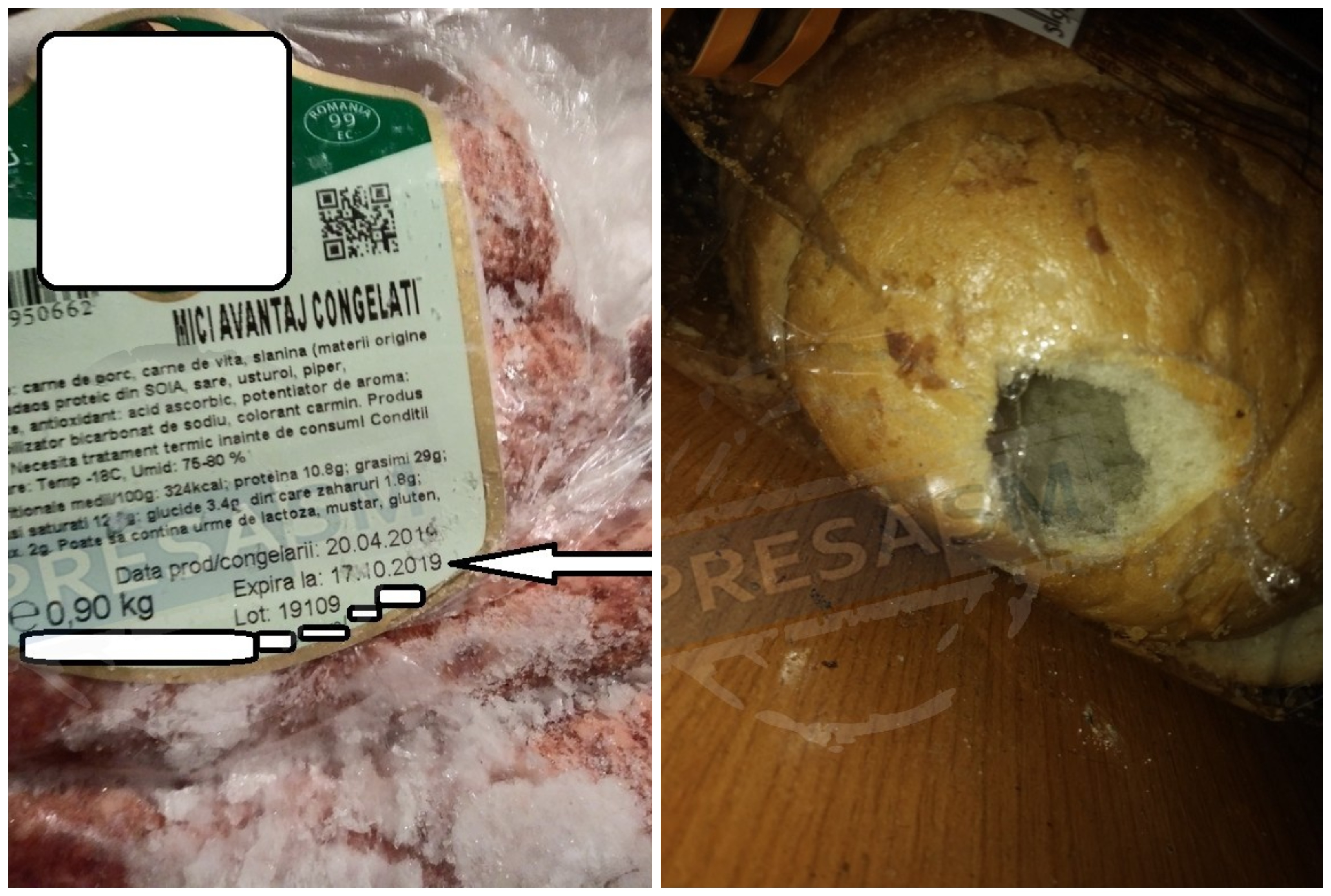 Un cititor al PresaSM a transmis pe adresa redacției mai multe fotografii prin care dorește să se plângă de faptul că ar fi cumpărat o caserolă de mici expirați și o pâine care pare ”începută” de șoar...