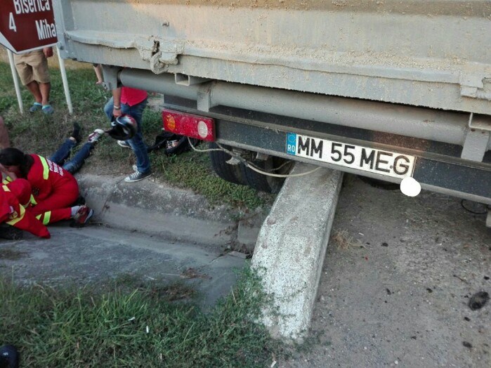 FOTO. Motociclist spulberat de o camionetă. O victimă la Urgență