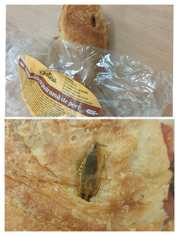Doar că a avut o surpriză. În sendviș nu s-a aflat doar pastramă de porc, ci și un surplus de proteine! Mai exact, o insectă. Scârbită, femeia a imortalizat situația, gândindu-se cu groază că ar fi putut ingurgita insecta.