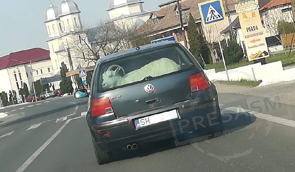 Un șofer a transmis pe adresa redacției PresaSM o fotografie cu o situație mai puțin obișnuită. Pe Drumul Național 19A, în orașul Ardud, șoferul unui autoturism Volkswagen și-a pus capra în portbagajul mașinii.