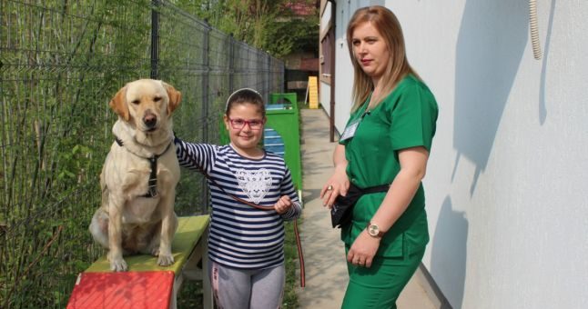 FOTO. O cățelușă dresată la Satu Mare ajută zeci de copii cu dizabilități din România