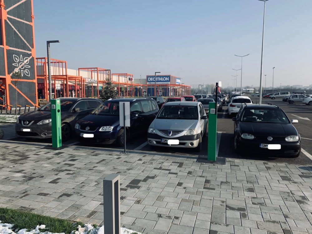 În parcarea noului Aushopping au fost amenajate puncte de alimentare a mașinilor electrice, ca și o facilitate pentru potențialii cumpărători. Tot aici sunt și multe alte facilități, printre care și un amfiteatru în aer liber, care - pe timp de vară - va fi în mod cert extrem de căutat de către sătmăreni.