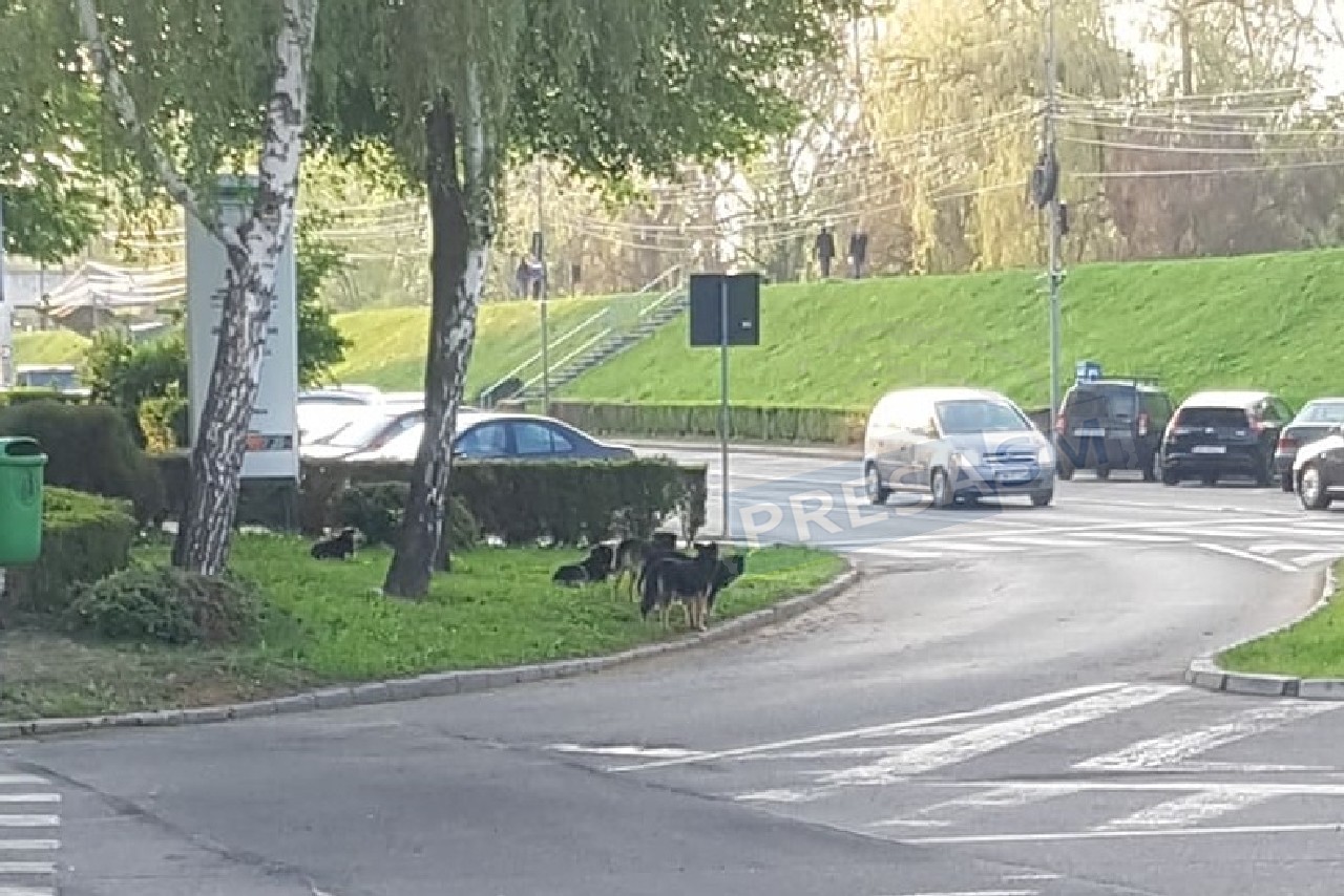 O haită de câini fără stăpân s-a ”mutat” pe Bulevardul Transilvania, chiar lângă Poliția Locală Satu Mare. Chiar dacă patrupedele nu atacă pietonii, nu același lucru se poate spune despre mașini, la care se năpustesc ori de câte ori au ocazia.