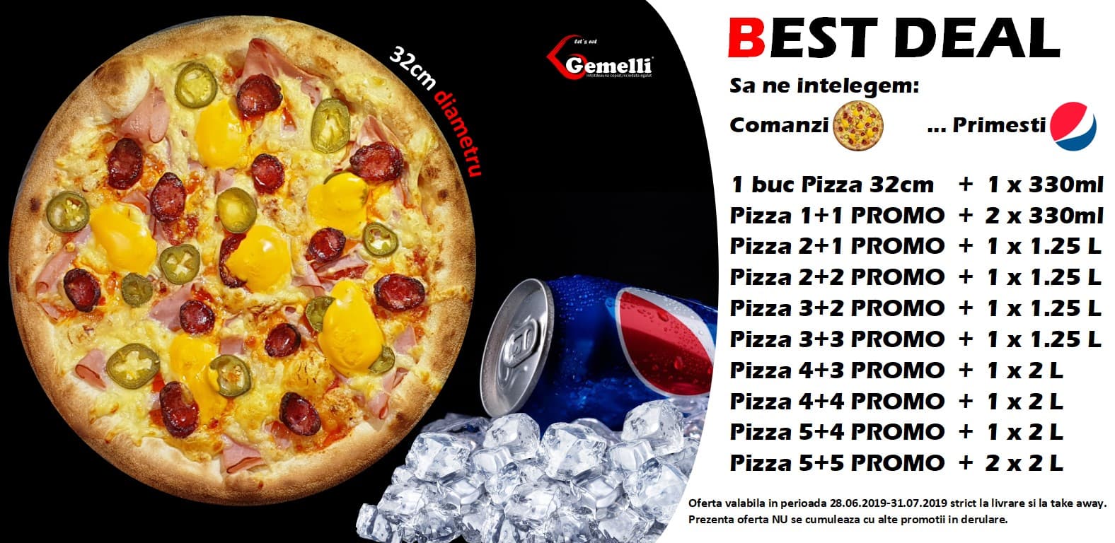 GEMELLI prezintă 📢BEST DEAL⚠️... 🔈🔉🔊OFERTĂ DE NEREFUZAT🔊🔉🔈 *oferta valabilă in perioada 28.06.2019-31.07.2019 strict la livrare si la take away.