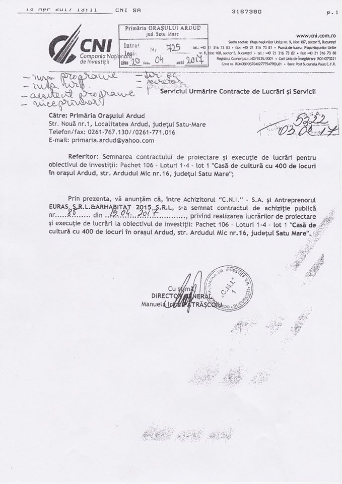 ”O veste bună pentru toţi ardudenii. După multe încercări şi contestaţii, vă aducem la cunoştinţă faptul că în data de 19 aprilie 2017 s-a semnat contractul de achiziţie publică şi execuţie de lucrări la obiectivul de investiţii: „Casa de Cultură cu 400 de locuri în oraşul Ardud, str. Ardudul Mic, nr. 16, judeţul Satu Mare.”, este anunțul făcut de edilii locali pe pagina de Facebook: Ardud- Oraș Turistic Medieval.