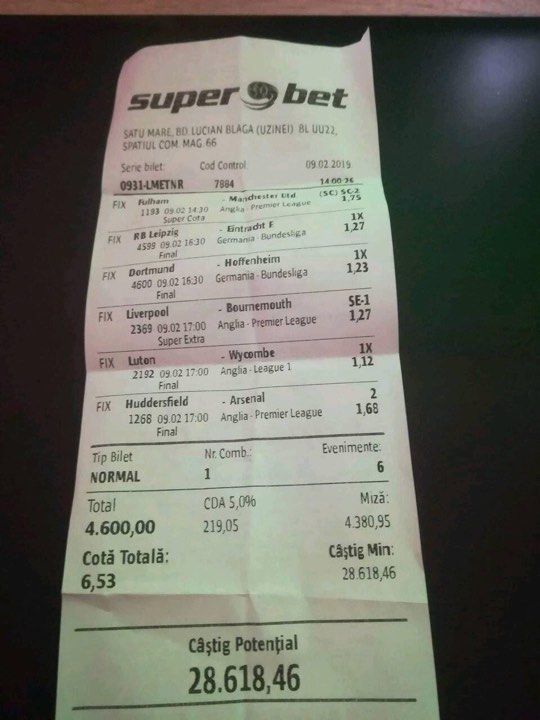 SURSA: sport.ro FOTO. Parior, nu glumă! Biletul pus de un sătmărean și câștigul fabulos