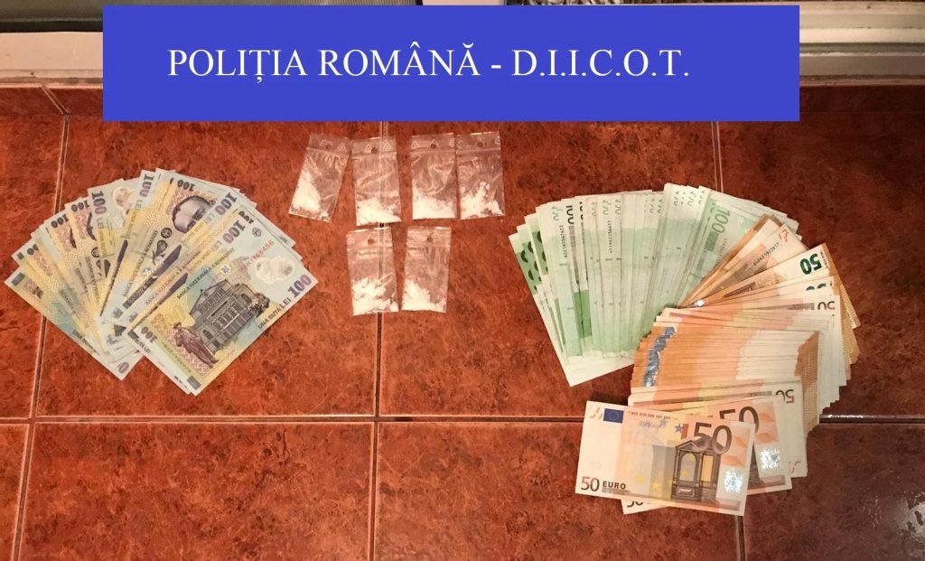 În urma perchezițiilor, au fost descoperite și ridicate 9,9 grame de amfetamină cu cofeină, 545 de grame substanță cristalină (4 CEC), 287 de grame substanță cristalină (3 MMC), 9 comprimate de culoare roz (4 CEC), 113 plicuri transparente cu zip-lock conținând substanță pulverulentă de culoare albă, 6 grame de cannabis, 4 timbre LSD, 1grinder, 17 telefoane mobile, 2 laptop-uri, cartele SIM și carduri SD. De asemenea, au fost descoperiți și ridicați 19.650 de lei și 11.000 de euro.