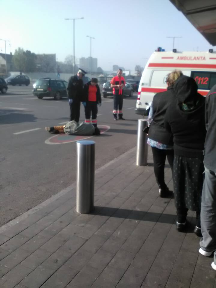 FOTO. Persoană căzută pe drum la Kaufland. Aproape nimeni nu a intervenit