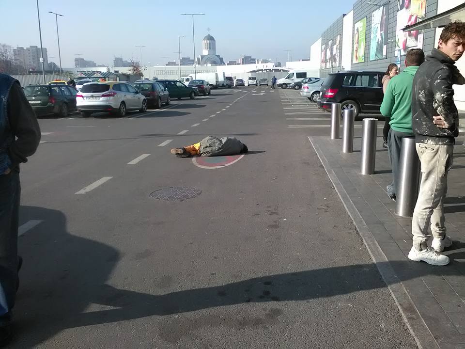 Imagini triste au fost surprinse astăzi în parcarea de la Kaufland. O persoană, aparent fără adăpost, a căzut în mijlocul drumului, în fața supermarket-ului Kaufland, situat pe Drumul Careiului.