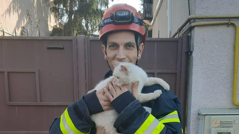 Pisica a fost salvată și predată stăpânei.